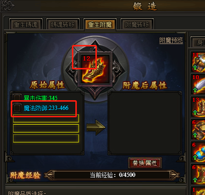 可对12件神·重生装备进行重生附魔获得额外属性,只有重生层数8重及以上的神·重生装备才能进行重生附魔