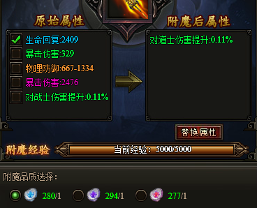 附魔属性后及时替换,4品以下的属性不会提示是否更换