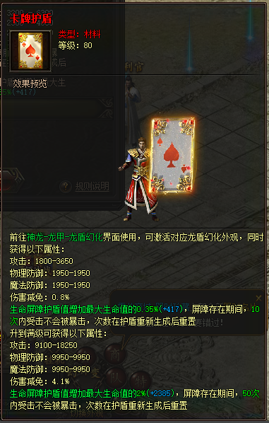 普通/高级/神级区别:普通龙盾:生命屏障护盾值只增加固定数值