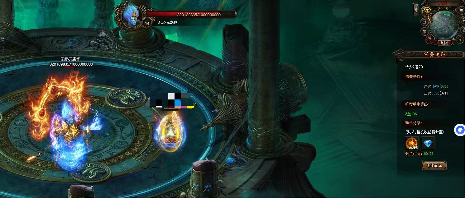 2、进入玩法场景无消耗,在时限内击杀所有小怪和BOSS后即可通关对应层数